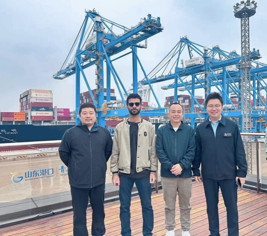 在自动化码头,Hussain Shay Shah深入了解了码头的运作流程和技术应用,包括智能管控系统、无人驾驶导引车及循环充电技术等,与工作人员进行了深入交流,并亲身体验了自动化码头的高效作业。