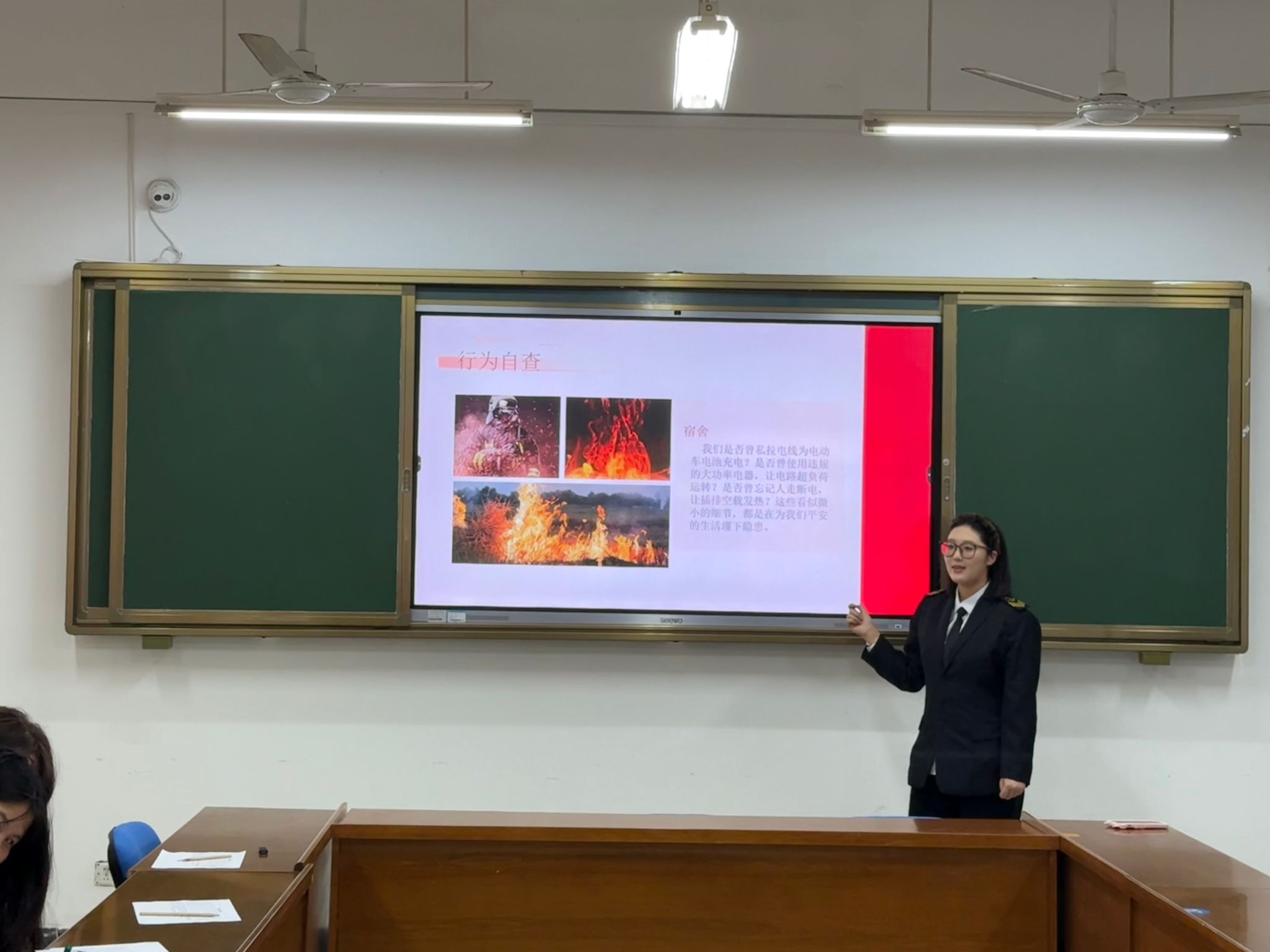 比赛中,各参赛选手依次登台,围绕“消防安全”这一核心主题,结合精心准备的PPT,分别从火灾隐患排查、消防器材规范使用、火场科学逃生、校园消防注意事项等多个角度展开演讲。选手们精神饱满、语言铿锵,既有对消防理论的系统阐述,也有对真实案例的深入剖析,更结合港航物流专业特点,提出了具有专业特色的安全见解,充分展现了新时代大学生对消防安全的高度关注与责任担当。