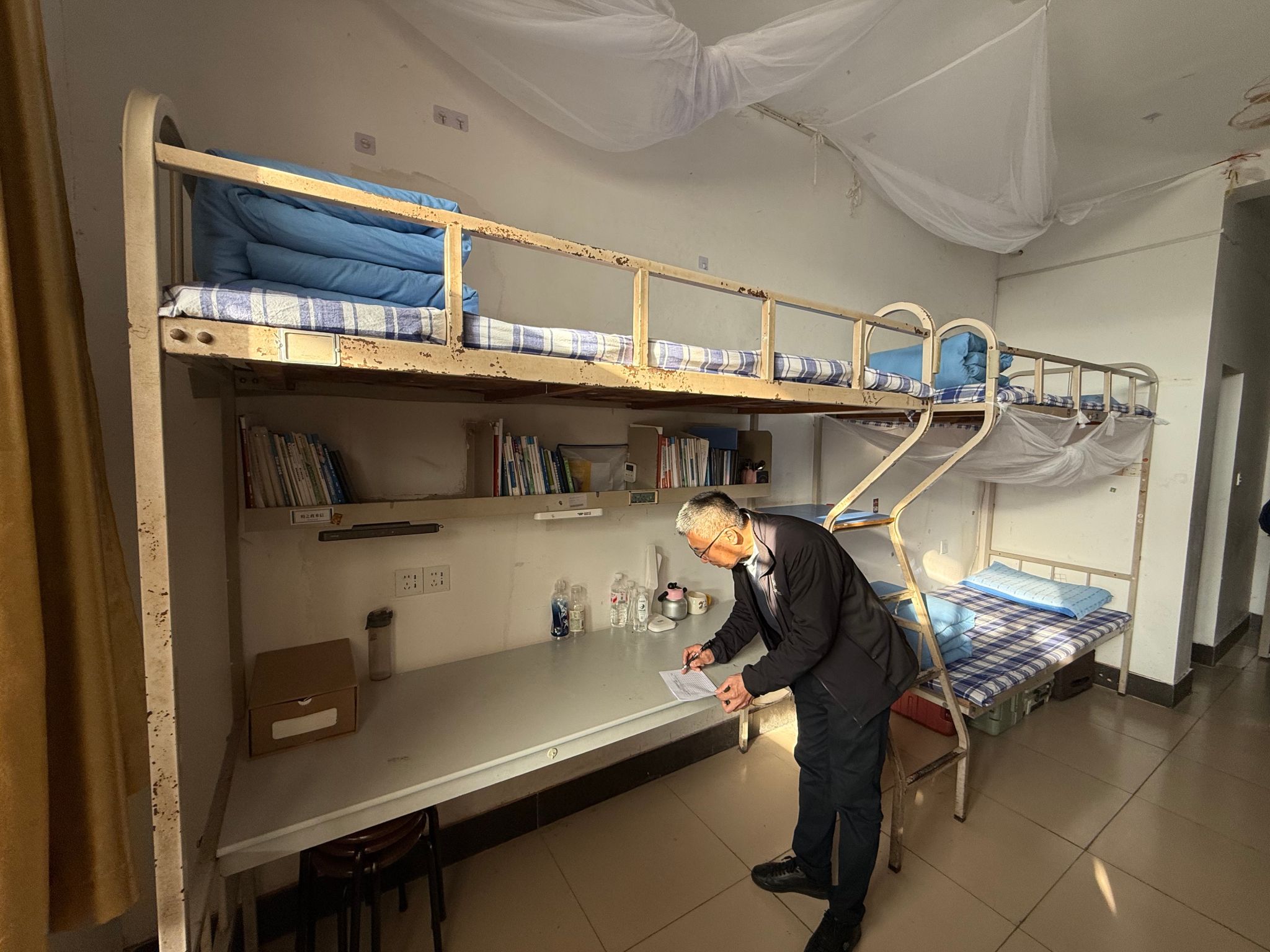 期间,与会人员对学生宿舍开展卫生与安全专项检查并进行量化评分,重点查看卫生死角清理、物品规范摆放及用电安全等方面,确保检查全面、情况清晰、整改落实。检查结束后,冷燃就宿舍管理工作提出三点要求:一是细化内务标准,提升卫生检查要求;二是巩固现有管理成效,健全长效监督机制;三是发挥学生干部示范作用,动员全体同学共同维护宿舍整洁与安全。与会人员认真听取会议要求,并表示将扎实推进各项措施,切实提升宿舍管理水平。