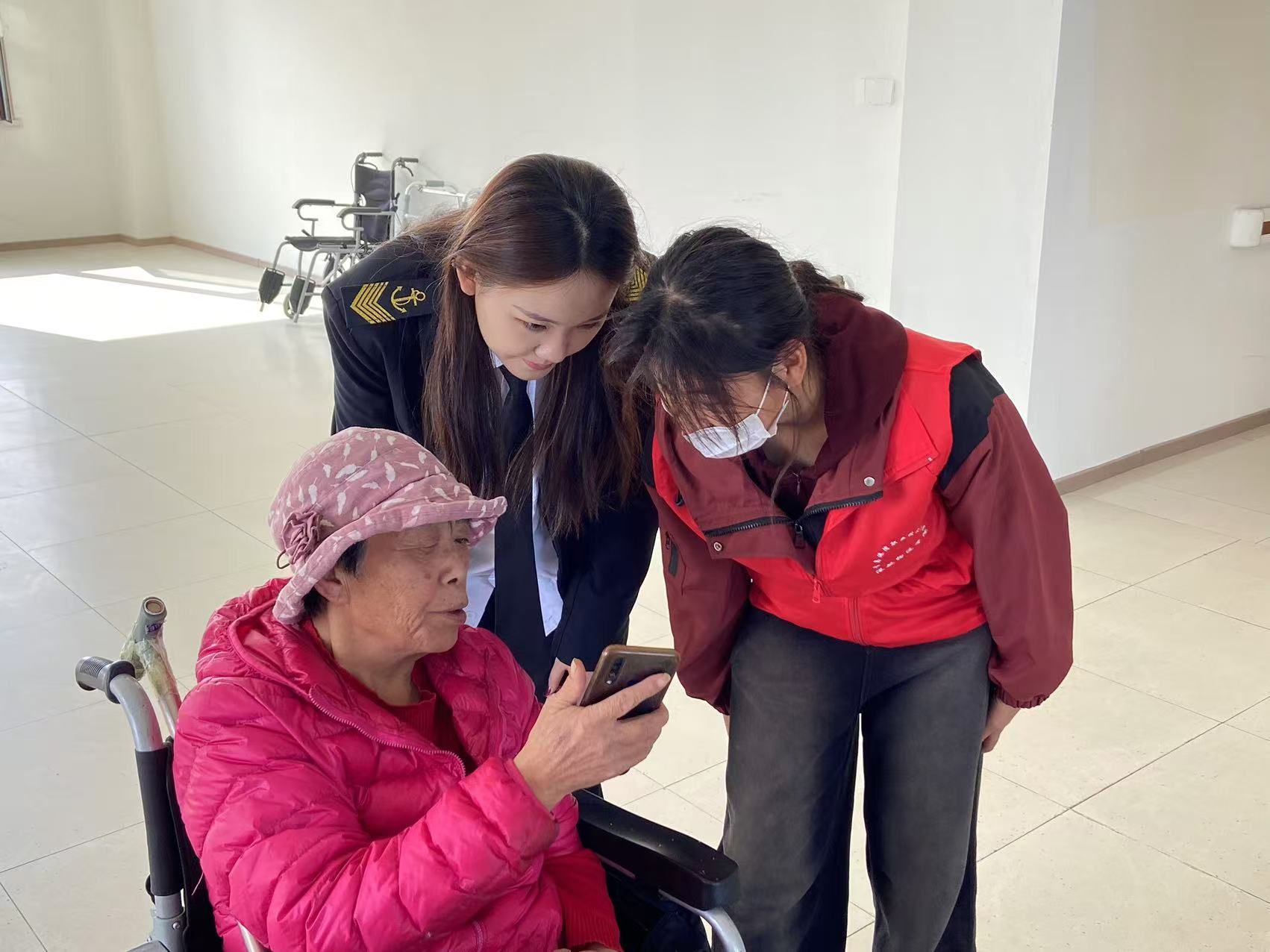 志愿者们到达养老院后分组整理房间、打扫卫生,为老人们营造整洁舒适的生活环境;陪伴老人聊天,倾听他们的故事,架起心灵沟通的桥梁;教老人使用智能手机,帮助他们更好地融入数字生活。老人们也积极参与互动,为志愿者们传授中医知识和看手相技艺,展现了深厚的文化底蕴。这场跨年龄的交流,不仅让老人们感受到了社会的关怀,也让志愿者们体会到传统文化的魅力和智慧。