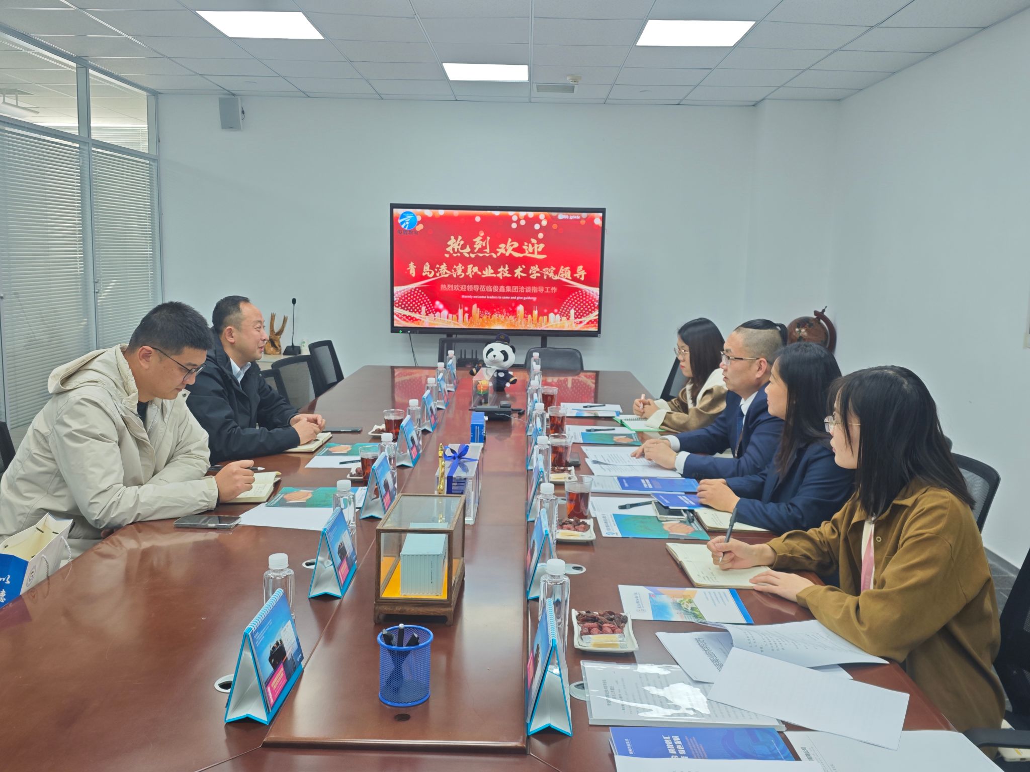 走访期间,姜哲一行实地了解了企业的生产运营情况,并看望了学院2022级在岗实习的学生和往届毕业生。青岛俊鑫国际物流有限公司总经理赵鑫、副总经理孙俊热情接待并组织座谈交流,双方围绕订单班人才培养、实训基地建设、一体化营销等主题进行了深入探讨。企业负责人对学院的专业优势和学生综合素质给予高度评价,并表达了进一步拓展合作领域的意愿。