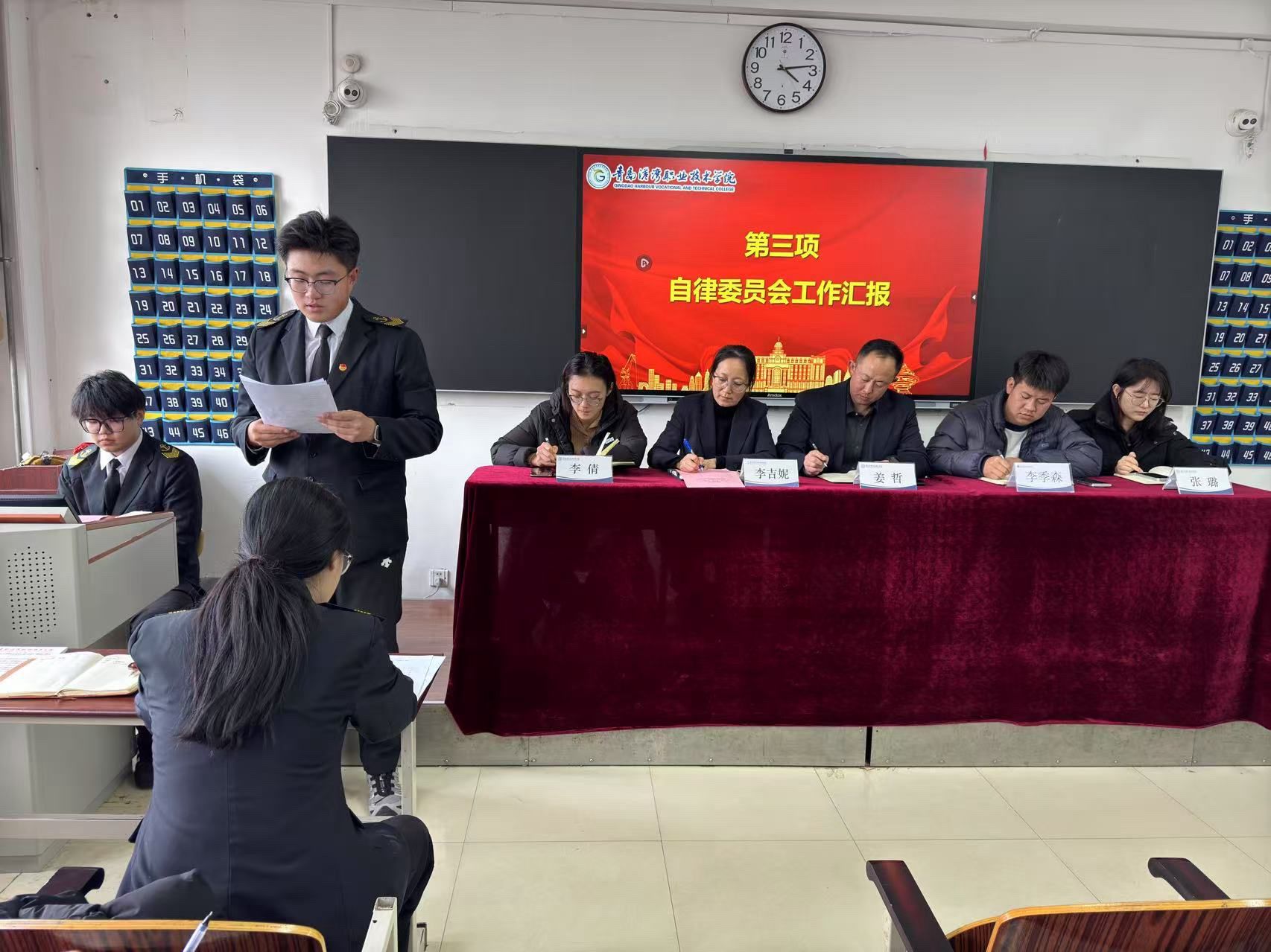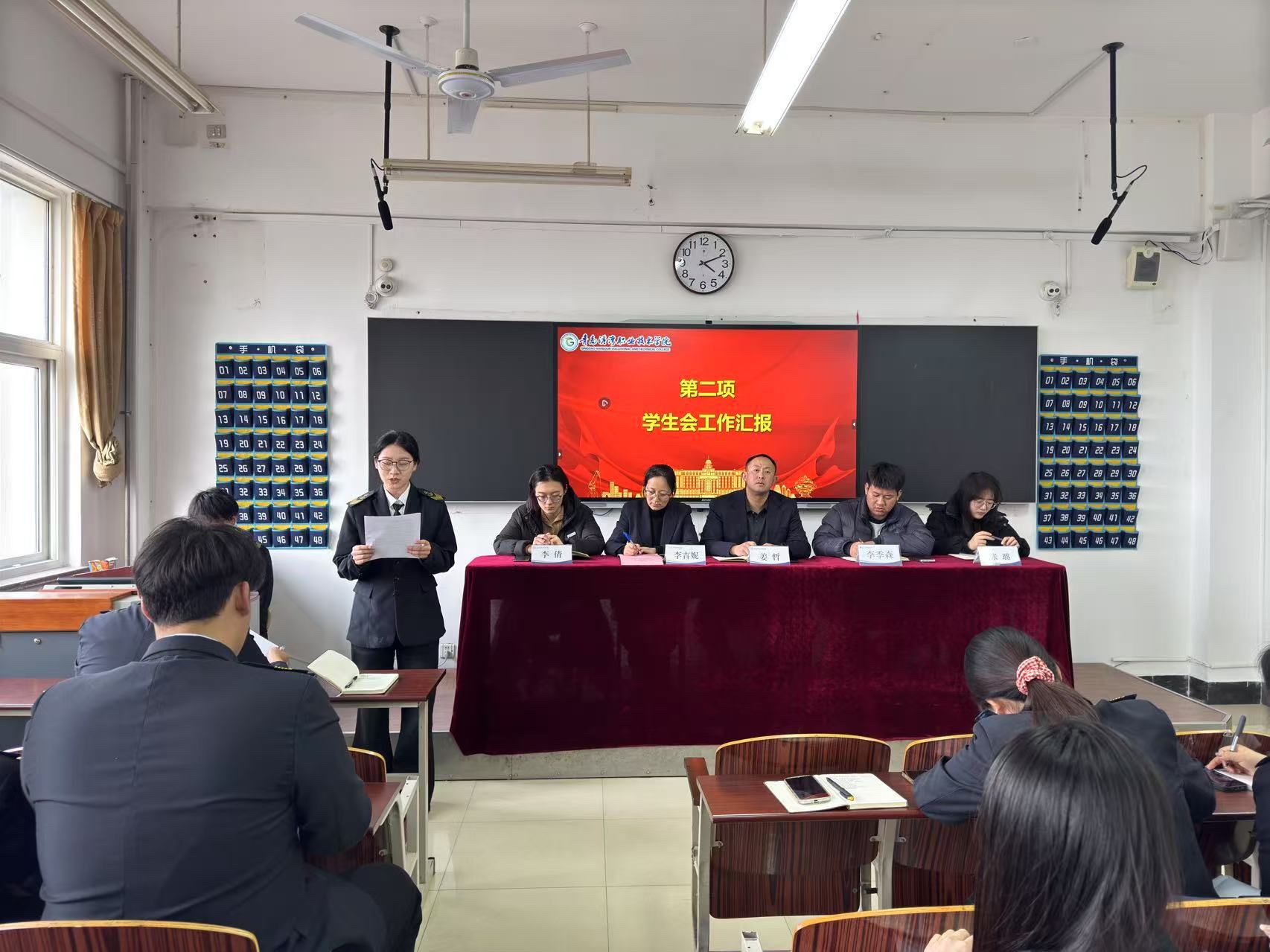 会议伊始,办公室副部长匡明玮通报了各班级考核排名。随后,学生会轮值主席张硕和自委会会长王玉超分别对各自部门的工作进行了总结,提出了改进方案。在指导环节,张璐解析了2024级奖学金评定问题;李季森强调了仪容仪表和宿舍安全,特别提醒严禁使用违规电器;李倩则就早操管理和女生宿舍卫生安全进行了详细指导。李吉妮进一步深入分析了早操管理的关键,特别强调学生干部应树立榜样,关心同学的成长与需求,做到关心与管理并重,共同营造和谐的校园氛围。