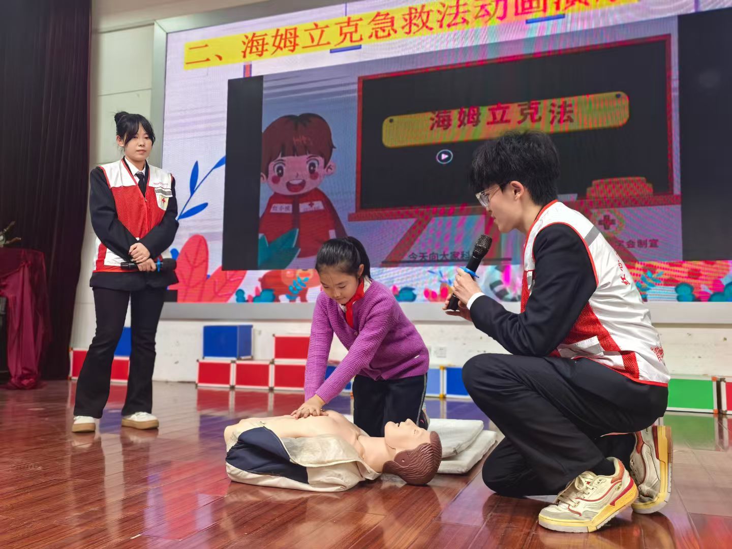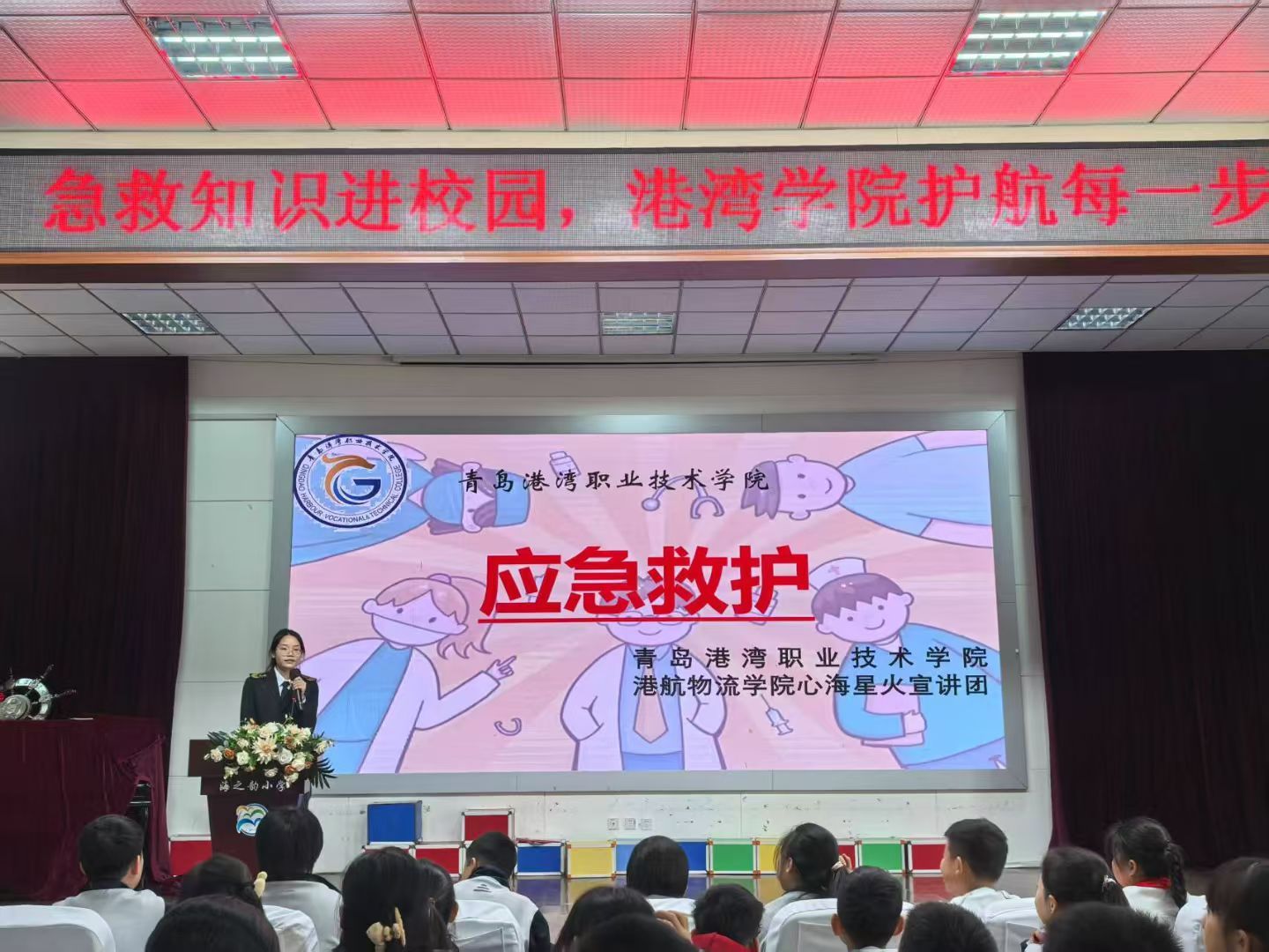 3月11日,志愿者们走进海崖幼儿园,开展健康生活宣讲,以生动有趣的方式引导孩子们养成良好的生活习惯,提高健康意识。3月13日,志愿者们来到胶南街道中心幼儿园,为孩子们带来动物与天气知识科普,激发他们对大自然的探索兴趣。随后,志愿者们又走进金色摇篮彩虹桥幼儿园和滨海新村幼儿园,围绕健康生活和春分节气展开主题宣讲,帮助孩子们学会自我关爱,并感受传统文化的魅力。3月25日,志愿者们来到海之韵小学,开展救护培训,手把手教授急救技能,提高学生应对突发情况的能力,为他们的健康成长保驾护航。